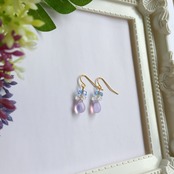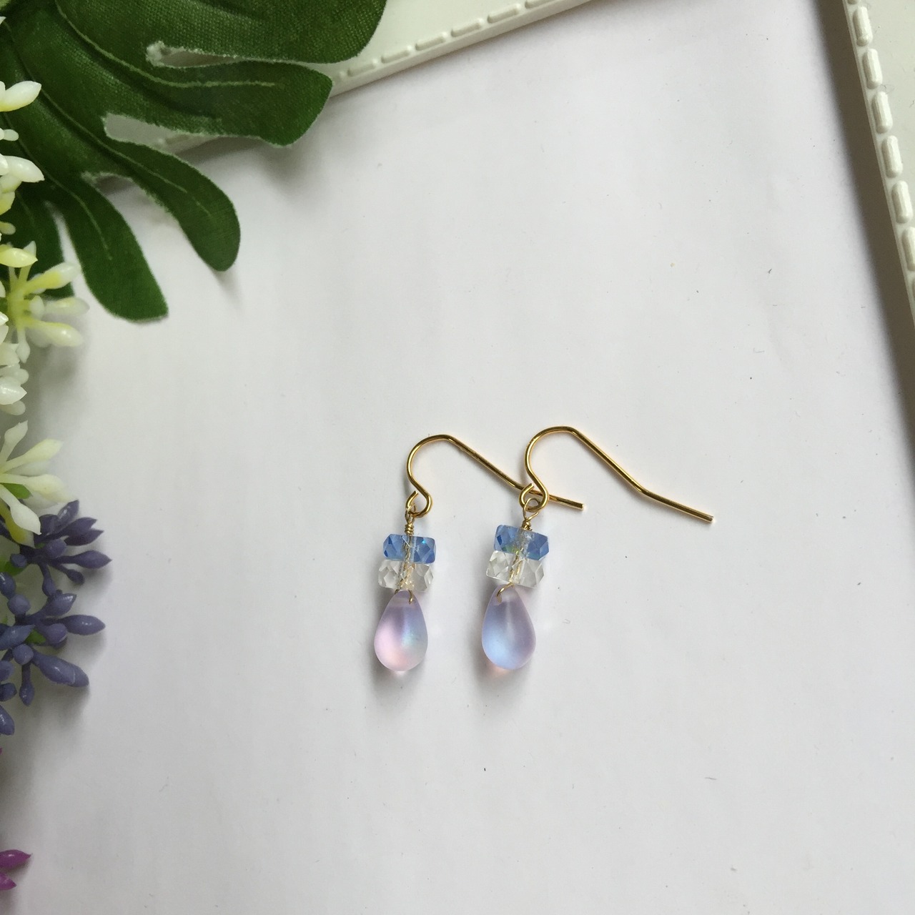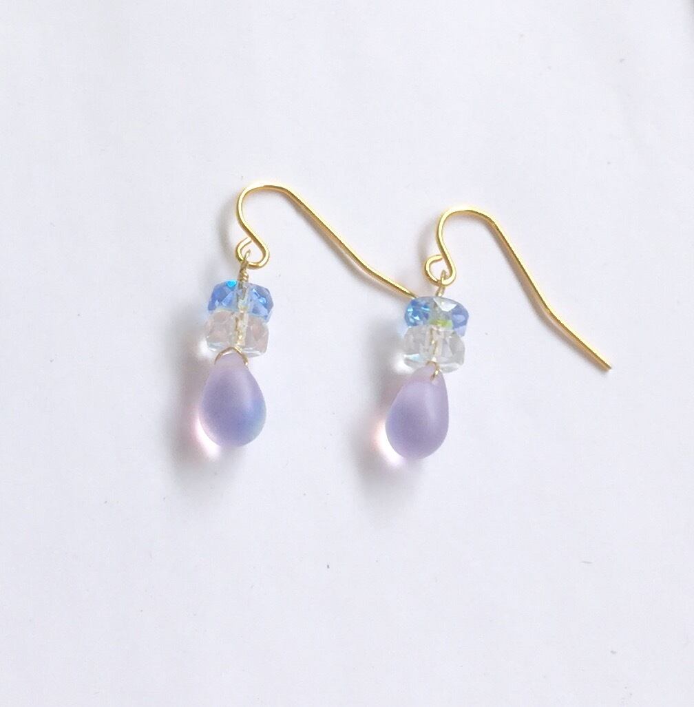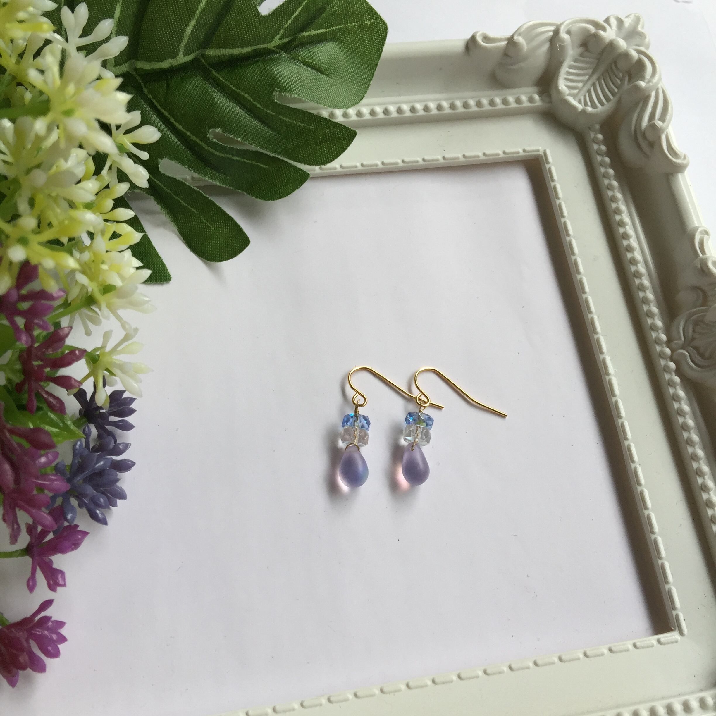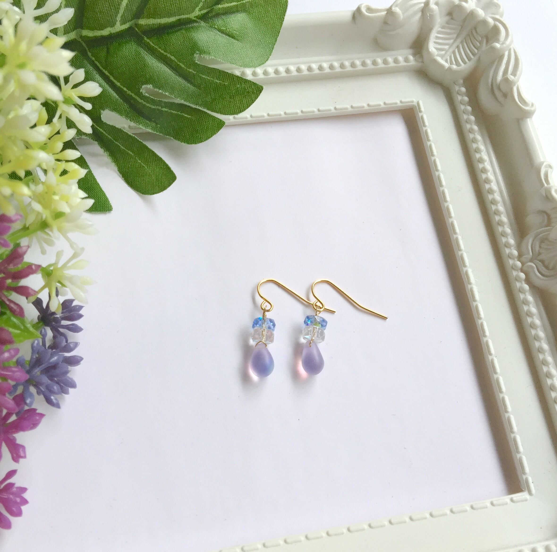 2つのカラーが美しいツヤ消しのフロストティアドロップビーズに同じくチェコビーズの多面ボタンカットビーズをあしらい、輝きをプラスしました。